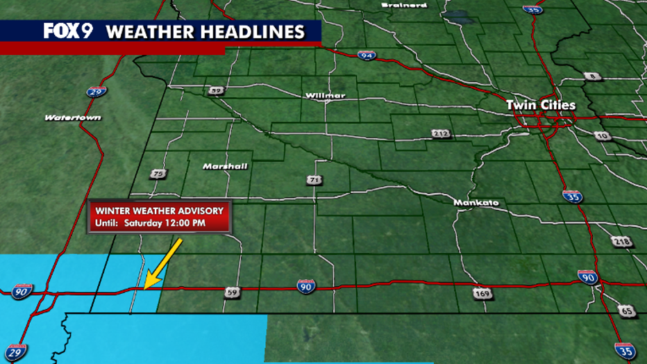 MINNEAPOLIS (FOX 9) - It's a cold weekend with snow in the southwestern corner of Minnesota on Saturday morning as a clipper system slides through the Midwest.
