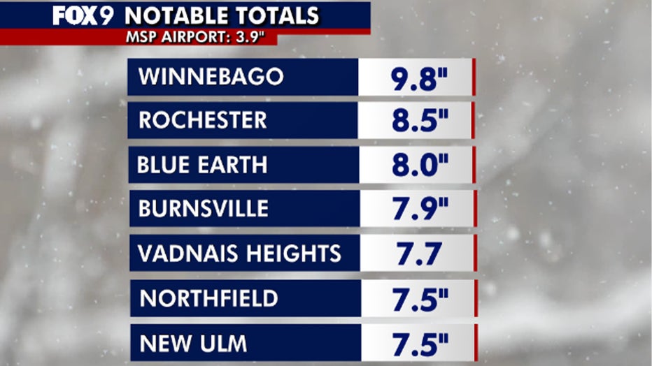 MINNEAPOLIS (FOX 9) - Snow continued to fall past midnight last night, with the winter system now working its way to the east of the region.