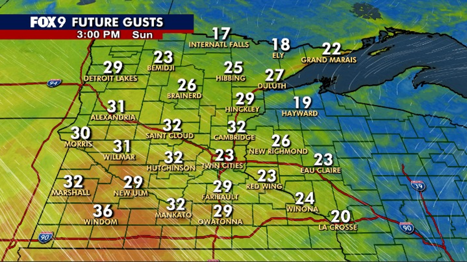 MINNEAPOLIS (FOX 9) - Strong winds will bring some snow to the Twin Cities Sunday, along with cooler temperatures.
