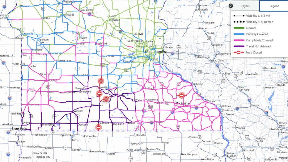 Live updates: Southern MN roads closed or no travel advisory due to white-out conditions