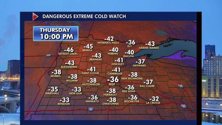 FOX 9 Meteorologist Ian Leonard says much of Minnesota will be under an Extreme Cold Watch from 9 p.m. Thursday until noon Saturday.