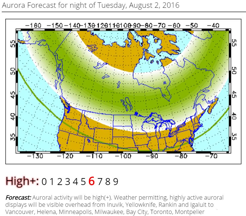 MINNEAPOLIS (KMSP) - Thanks to a recent CME (Coronal Mass Ejection), a solar wind will fly by earth on the evening of Tuesday August 2, 2016. These geomagnetic storms can really make their presence known by disruption electronic communications, setting off voltage alarms, and creating a spectacular Aurora Borealis, aka, the Northern Lights.